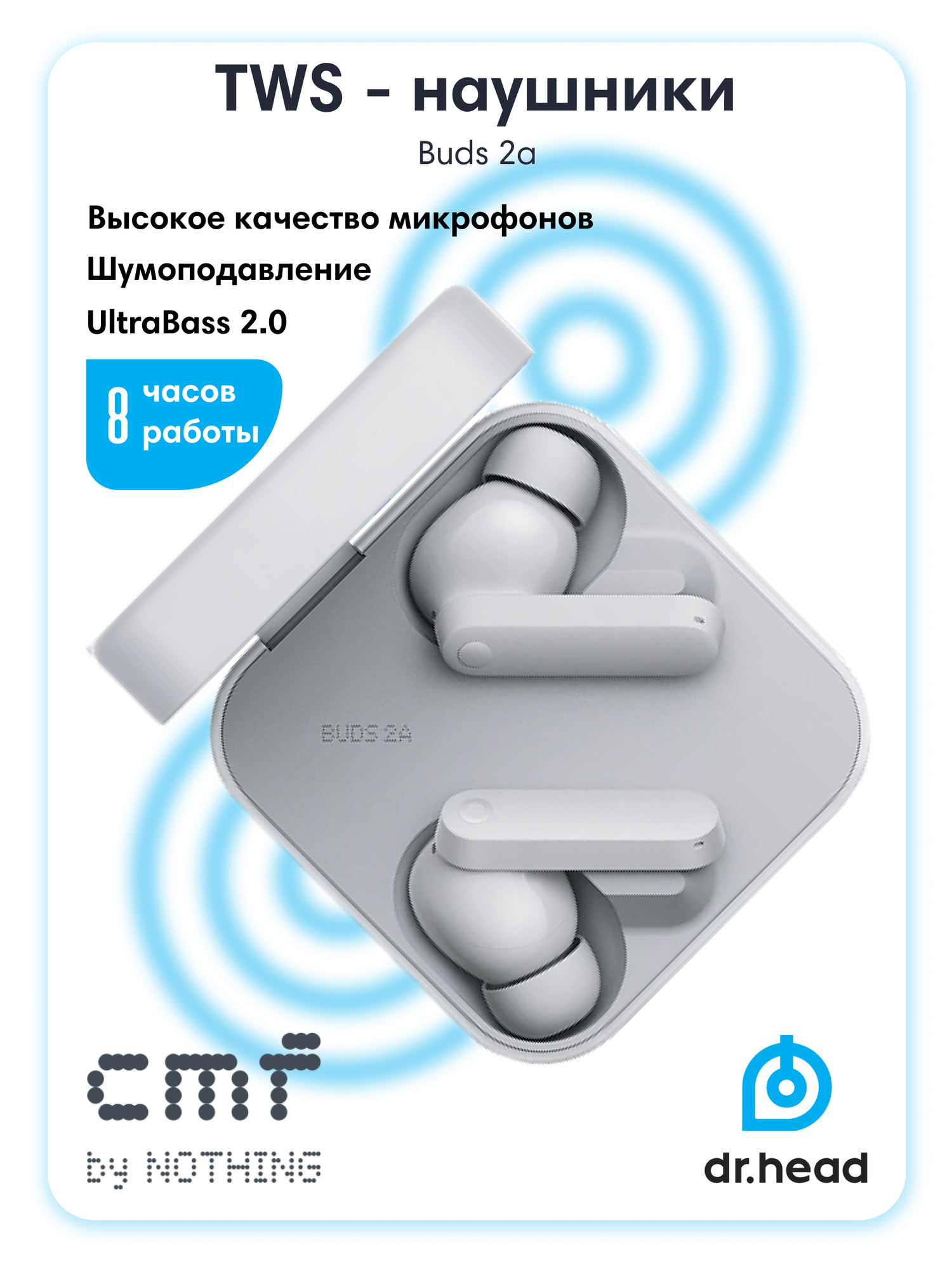 Купить Наушники CMF Buds 2a by Nothing tws внутриканальные, с шумоподавлением, light grey с доставкой по всей России.