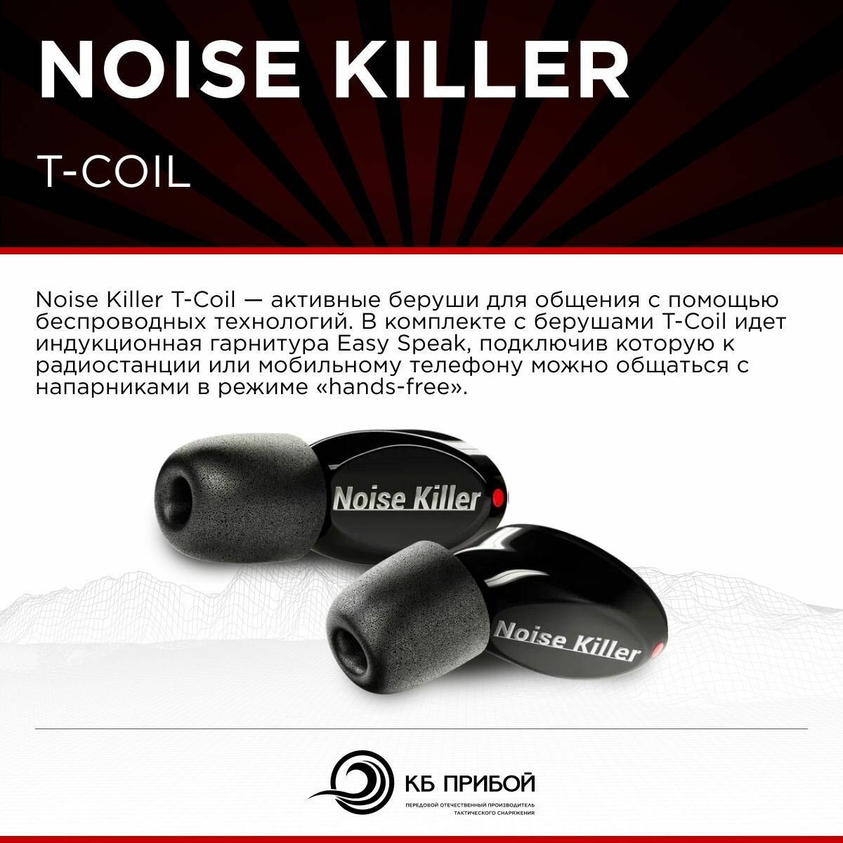 Noise Killer T-Coil — активные беруши для общения с помощью беспроводных технологий. В комплекте с берушами T-Coil идет индукционная гарнитура Easy Speak, подключив которую к радиостанции или мобильному телефону можно общаться с напарниками в режиме «hands-free».