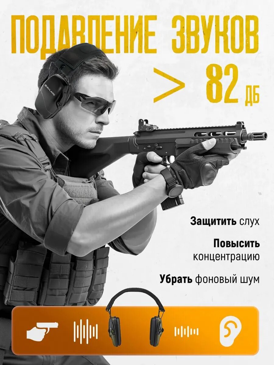 Наушники для стрельбы Savlaro, тактические, активные, складные, черные, противошумные, строительные, с шевроном: сравнение цен, характеристики, фото, актуальное наличие и цены.