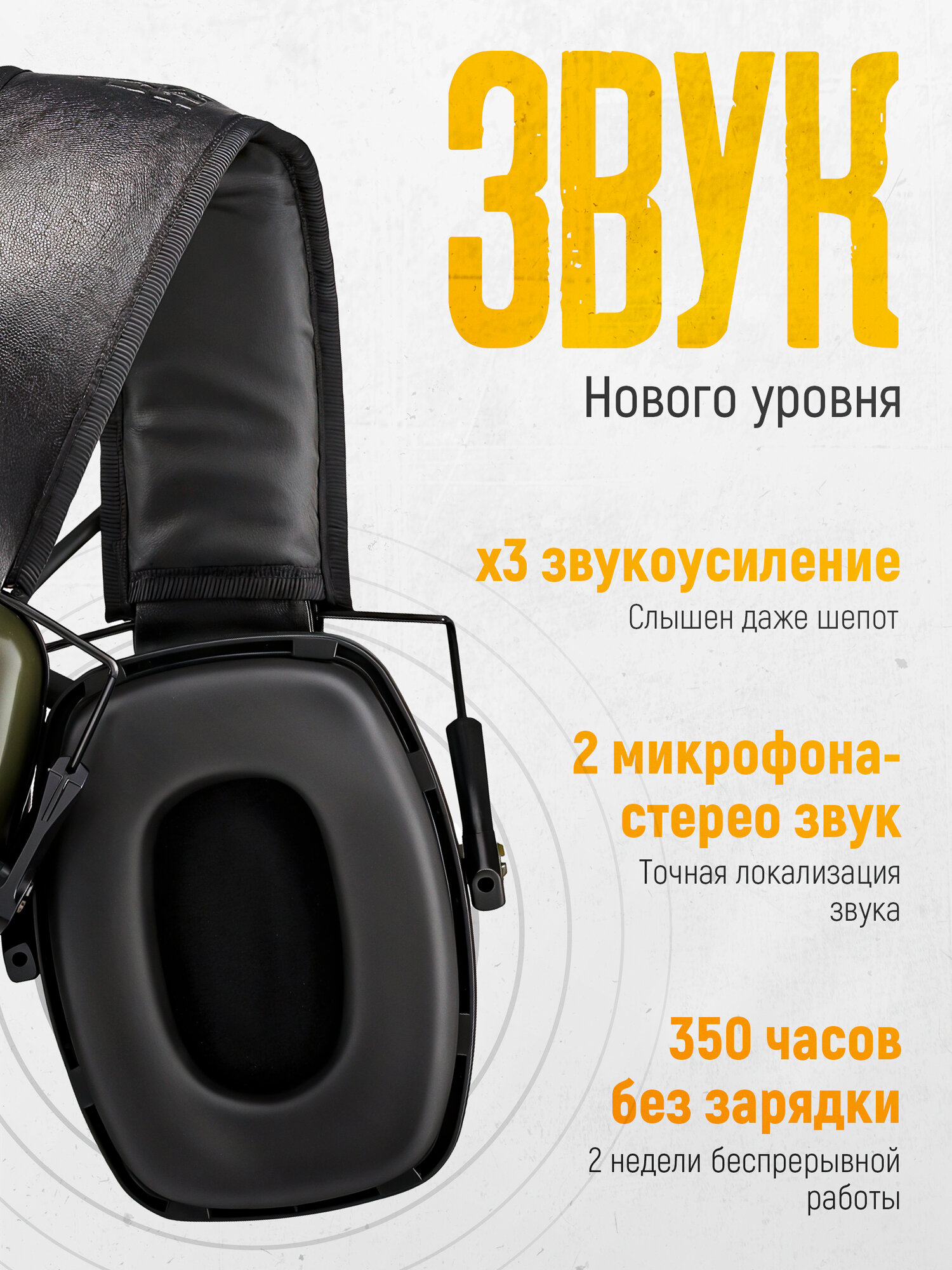 Тактические шумопоглощающие наушники прекрасно подойдут для охоты, для занятий стрельбой, для страйкбола или пейнтбола. Многофункциональные активные тактические наушники с функцией шумоподавления, электронные. Благодаря встроенному направленному микрофону наушники усиливают тихие звуки, такие как речь, звуки перемещения соперников в тактических играх, животных на охоте, и приглушают громкие звуки свыше 82 дБ - звук выстрела, работа перфоратора, отбойного молотка, газонокосилки, и другие громкие звуки. Имеют регулировку громкости для тихих звуков. Регулируются по посадке на голове. Могут применяться для стрельбы на полигоне, в тире, на охоте, при строительных работах, при тактических командных играх, на взлётно посадочной полосе. В комплекте идут с проводом для подключения к рации или обычному mp3 плееру. Могут использоваться как обычные наушники для прослушивания музыки или компьютерных игр. Уникальный товар имеет удобное оголовье (обод для упора на голову) и подушки с шумоизолирующими свойствами. С помощью встроенного микрофона и кнопки регулятора громкости вы можете регулировать уровень звука и четко услышать голоса и сигналы. Работает на батарейках. Удароустойчивый, качественный материал делает прибор прочным. Красивый внешний вид модели, зеленый цвет, большой размер понравится мальчику - подростку, молодому парню, взрослому мужчине и женщине. Удобные подушечки для ушей обеспечивают комфорт во время отдыха на природе или игры в пейнтбол. Наушники широкого назначения также подходят для обычных повседневных дел и являются неотъемлемой частью любой охотничьей амуниции. Накладные наушники с шумопоглощающими свойствами незаменимы для тактического, пейнтбольного, спортивного набора. Складное устройство имеет специальные штекеры для подключения к рабочим устройствам. Их шумоподавляющие и звукоизолирующие свойства позволяют эффективно снижать уровень шума и улучшать чувствительность к звукам окружающей среды. Наушники имеют возможность регулирования размера, что позволяет каждому человеку подобрать подходящую посадку такой пары. Работают от двух батареек типа AAA.