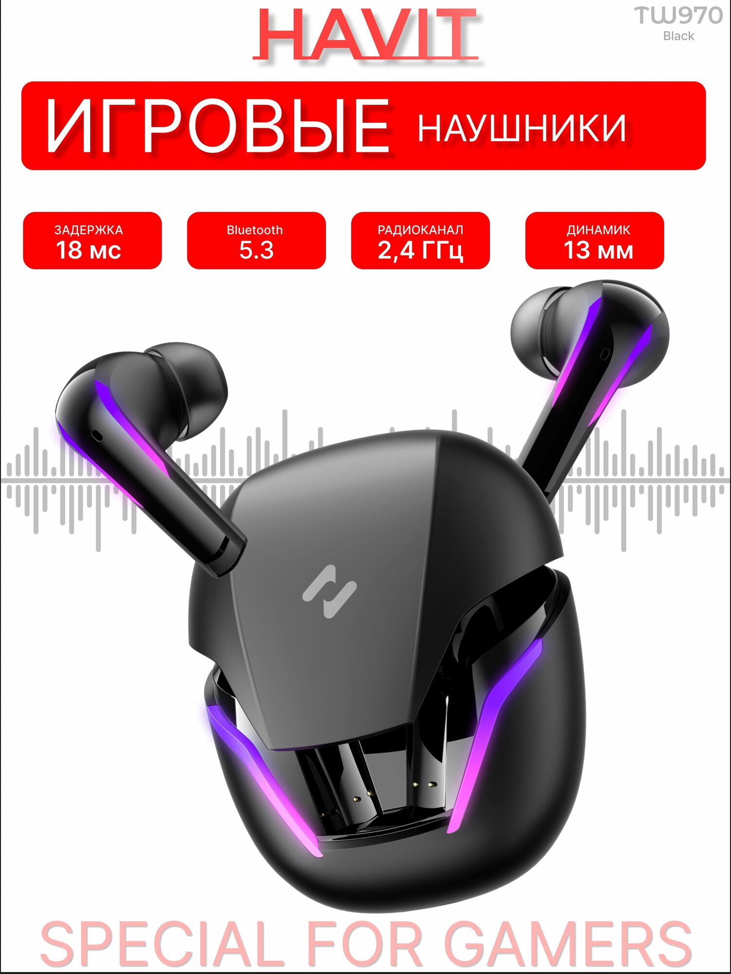 Наушники HAVIT TW970, True Wireless, кристально чистый звук, сенсорное управление, черные: сравнение цен, характеристики, фото, актуальное наличие и цены.