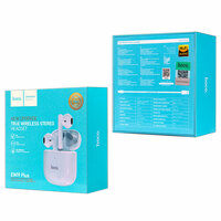 Наушники беспроводные HOCO EW19 Plus Блютуз наушники с микрофоном, TWS наушники Версия ВТ V5.3 Вес кейса 44г, одного наушника 3г Размер 52,5*44,5*23мм Ёмкость аккумулятора: зарядный чехол 300mAh, гарнитура 25mAh Время зарядки 1,5 часа Время работы в режиме разговора/ прослушивания музыки 4 часа Время работы в режиме ожидания 180 часов Истинно беспроводное стерео Комфортное ношение Автоматическое сопряжение
