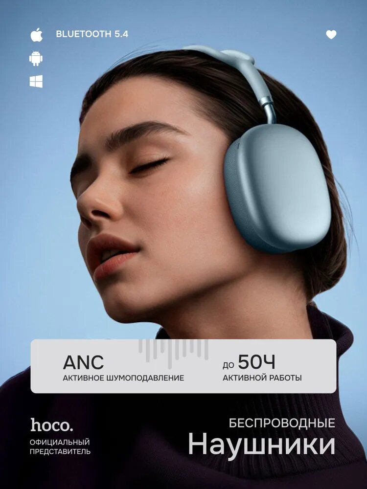 Почему стоит выбрать Hoco W65 Plus? ✅ Надёжное Bluetooth-соединение 5.4 ✅ Активное шумоподавление (ANC) ✅ До 50 часов автономной работы ✅ Стильный минималистичный дизайн ✅ Сменные амбушюры на магнитах ✅ Совместимость с любыми устройствами