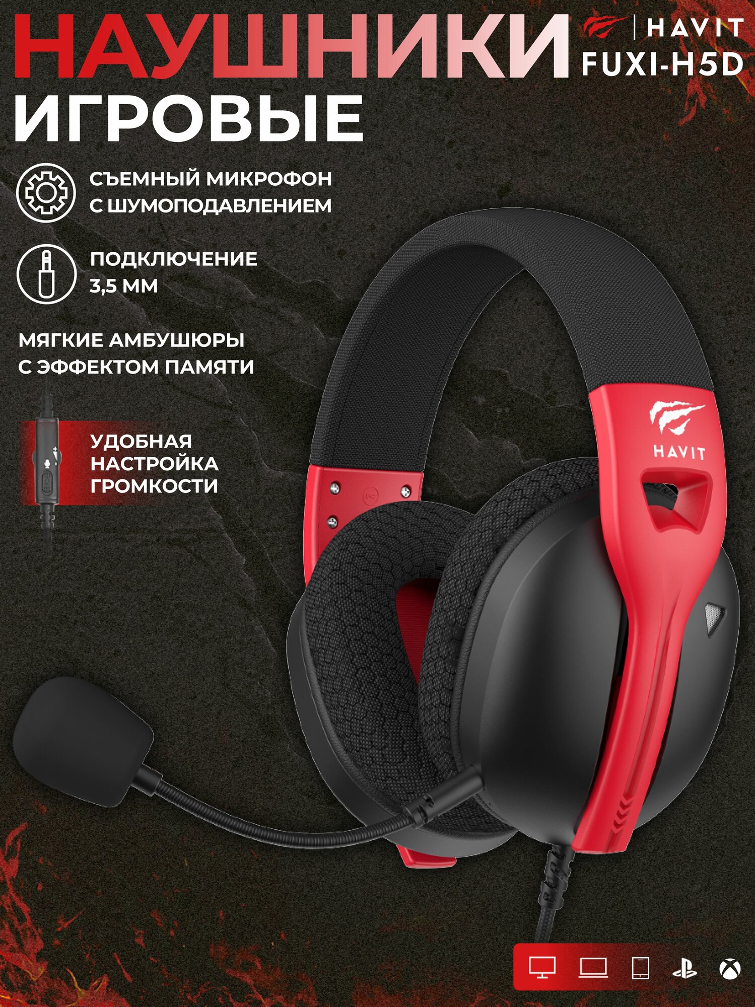 Наушники игровые Havit Fuxi H5D, с микрофоном, оголовье, проводное подключение: сравнение цен, характеристики, фото, актуальное наличие и цены.