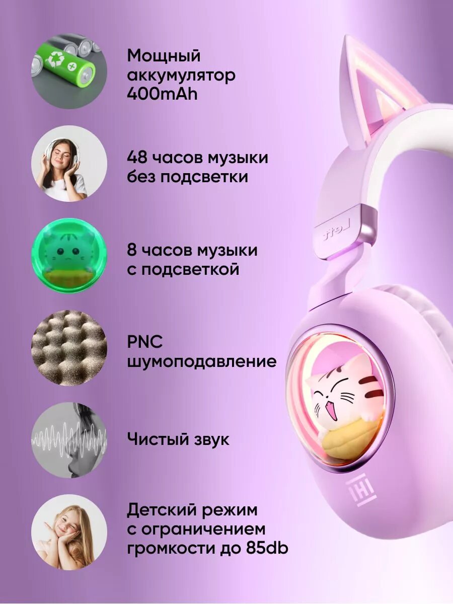 Оригинальные детские наушники поддерживают работу с ПК, телефоном и планшетом по беспроводному Bluetooth, подходят для просмотров фильмов, общения онлайн, для бега и спорта на свежем воздухе. Большие наушники с кошкой предлагают полную свободу движений без необходимости использования проводов, поэтому они подойдут для мальчиков геймеров и девочек подростков. Мягкие амбушюры позволят детям комфортно носить наушники с кошачьими ушками, не оказывая давления на голову и уши. Оголовье регулируется по размеру, обеспечивая комфорт при использовании наушников через голову. Встроенный микрофон позволяет детям участвовать в телефонных звонках и проводить видеоконференции, участвовать в онлайн-играх. Яркий дизайн с котиком в иллюминаторе делает эту модель особенной и привлекательной. Светящаяся подсветка с ушами кота добавляет эффектности и создает атмосферу игры и развлечения. Наши стильные наушники имеют мультифункциональные кнопки, которые позволяют ребенку легко управлять уровнем громкости и переключаться между песнями. Микрофон обеспечивает четкую и ясную передачу голоса, что делает эту детскую электронику идеальным подарком мальчикам и девочкам на любой праздник.
