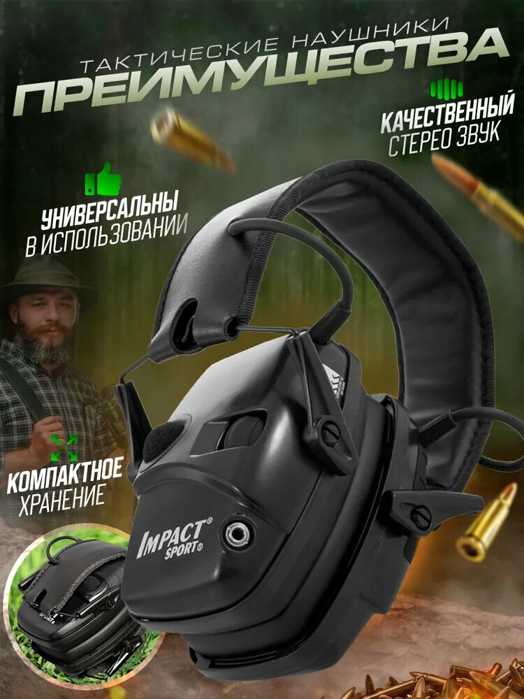 Тактические наушники для стрельбы с активным шумоподавлением