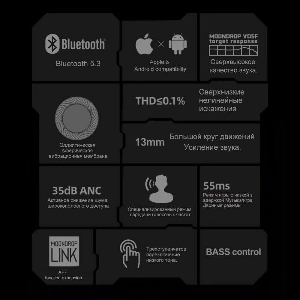 Наушники Moondrop Space, Whtie, TWS, Bluetooth 5,3, активное шумоподавление: сравнение цен, характеристики, фото, актуальное наличие и цены.