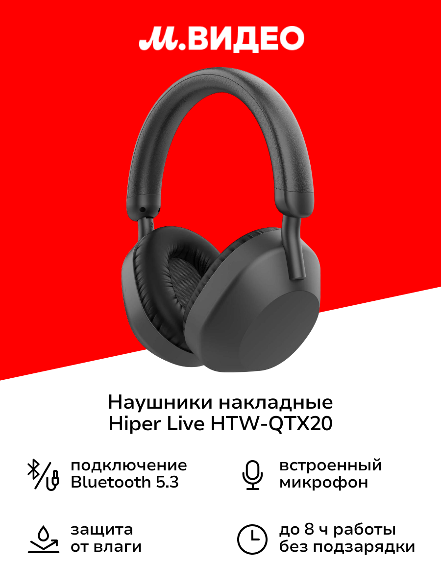 Купить Наушники накладные Bluetooth HIPER LIVE HTW-QTX20 Black с доставкой по всей России. Наушники накладные Bluetooth HIPER LIVE HTW-QTX20 Black: сравнение цен, характеристики, фото, актуальное наличие и цены.