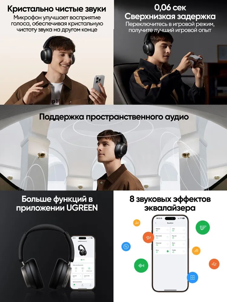 Наушники беспроводные UGREEN Studio Pro Hybrid ANC/LDAC/BT 6.0 (HP206 -55687) полноразмерные, черный: сравнение цен, характеристики, фото, актуальное наличие и цены.