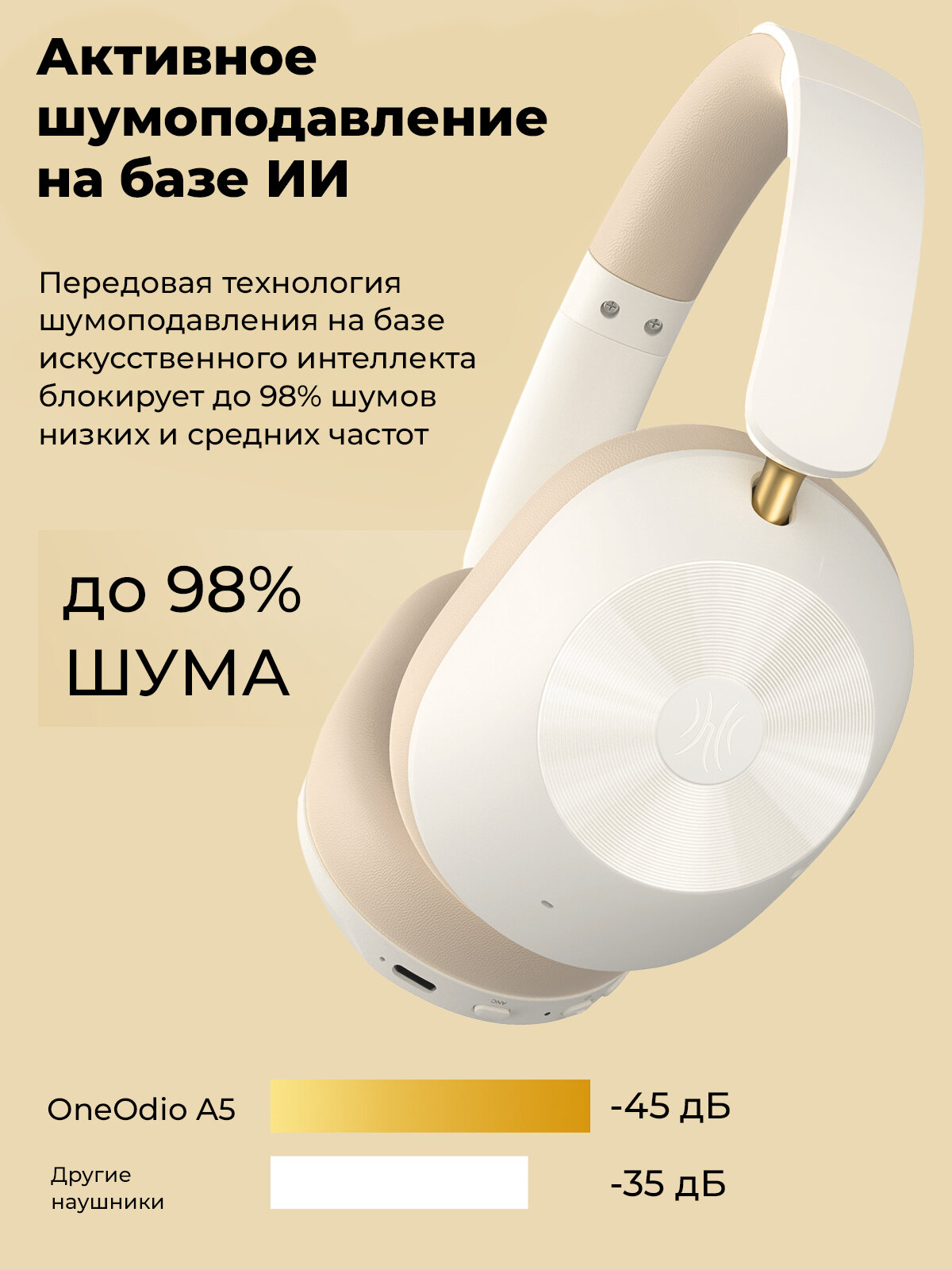 Наушники ONEODIO A5 white, полноразмерные, динамик 40 мм, 105 дБ, 32 Ом, 20 Гц – 40 кГц, Bluetooth 5.4: сравнение цен, характеристики, фото, актуальное наличие и цены.