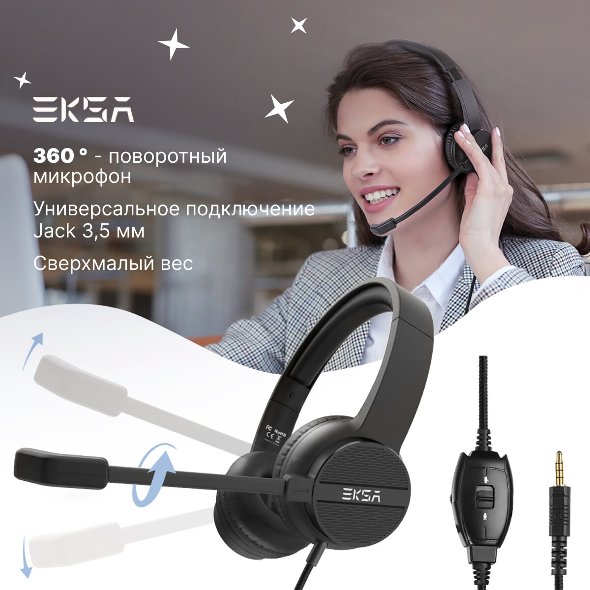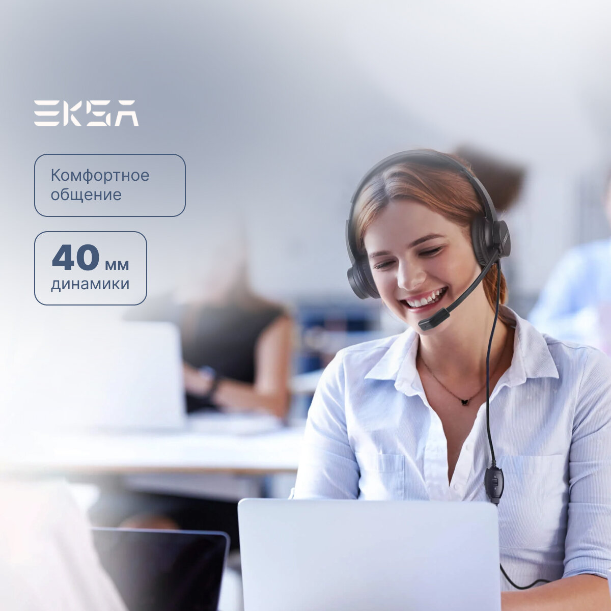 Гарнитура с микрофоном отлично подходит для колл-центров, бизнеса, Skype, обучения, вебинаров, курсов он-лайн, Zoom и занятий онлайн.