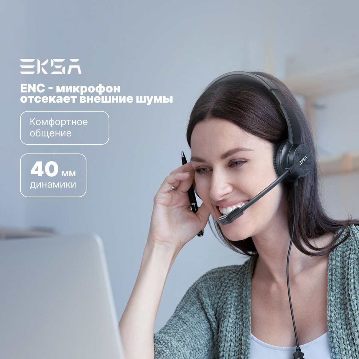 Гарнитура для офиса и колл центра оснащена системой голосовой связи EKSAtelecom VoicePure ENC с двумя микрофонами, которая обеспечивает четкость вашего голоса.