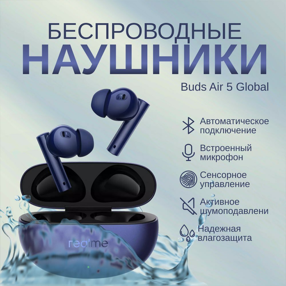 Беспроводные TWS-наушники realme Buds Air 5 Global для РФ, синий: сравнение цен, характеристики, фото, актуальное наличие и цены.