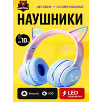 Купить Наушники с ушками кошки полноразмерные беспроводные с LED подсветкой, Голубой с доставкой по всей России.
