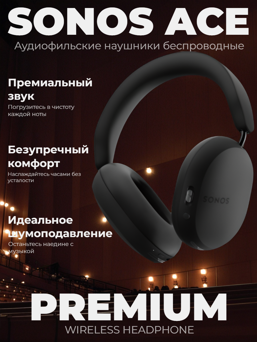 Купить Беспроводные наушники Sonos Ace Wireless Noise Canceling Over-Ear, черный (ACEG1US1BLK) с доставкой по всей России.