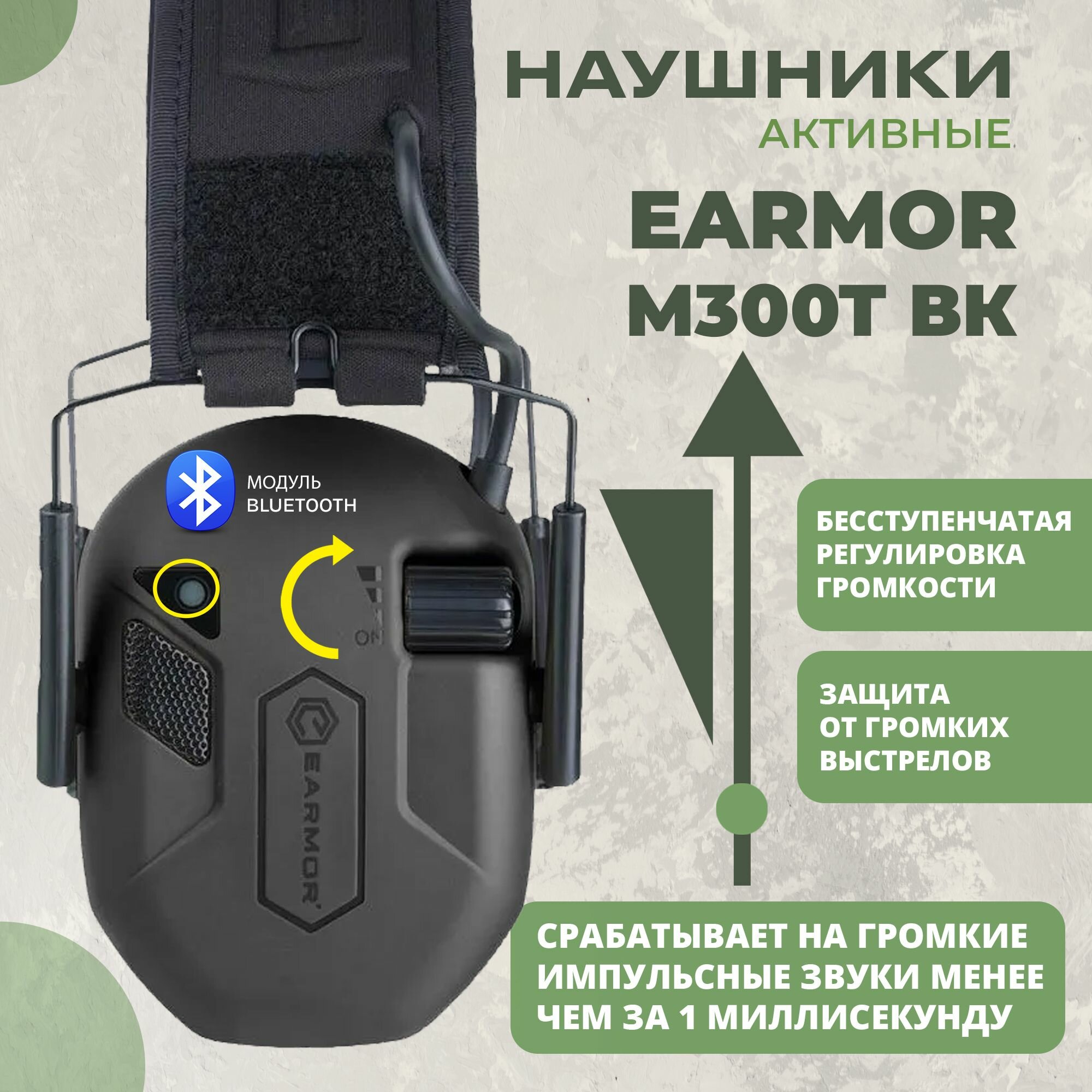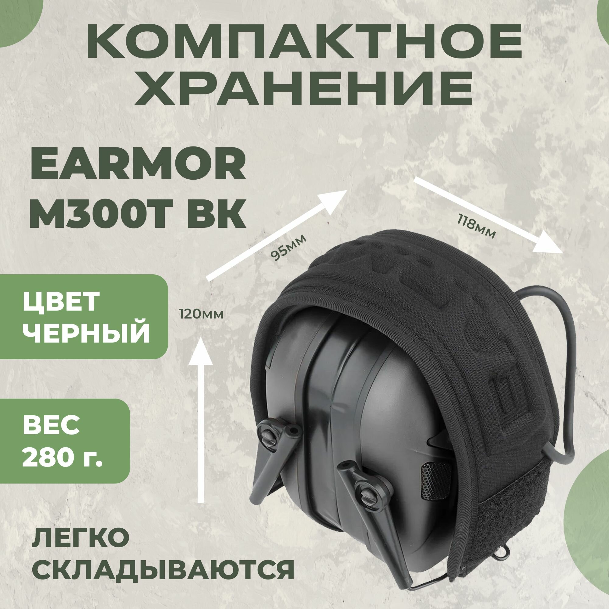 Купить Наушники тактические с шумоподавлением и Bluetooth соединением Earmor M300T черные / Стрелковые тактические наушники с доставкой по всей России.