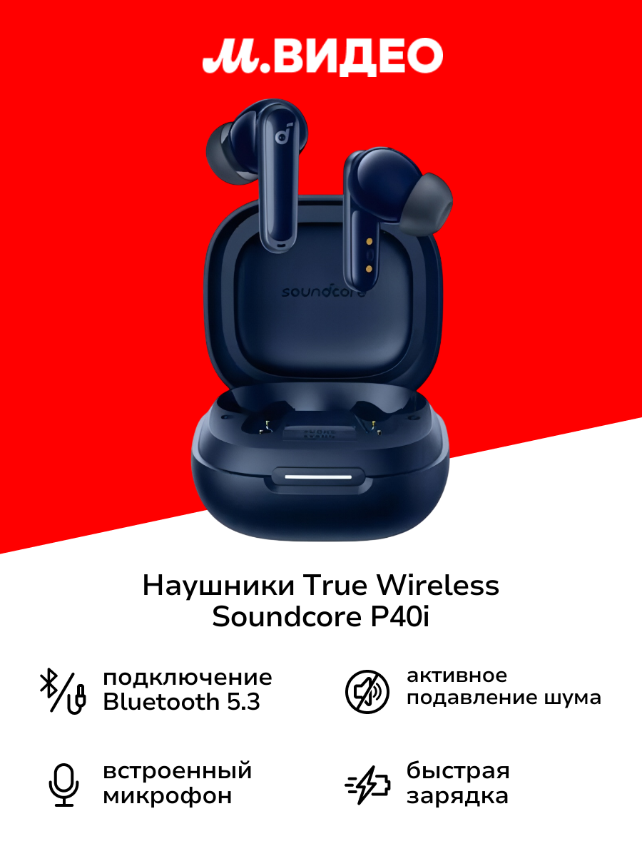 Купить Наушники True Wireless Soundcore P40i Navy с доставкой по всей России. Наушники True Wireless Soundcore P40i Navy: сравнение цен, характеристики, фото, актуальное наличие и цены.