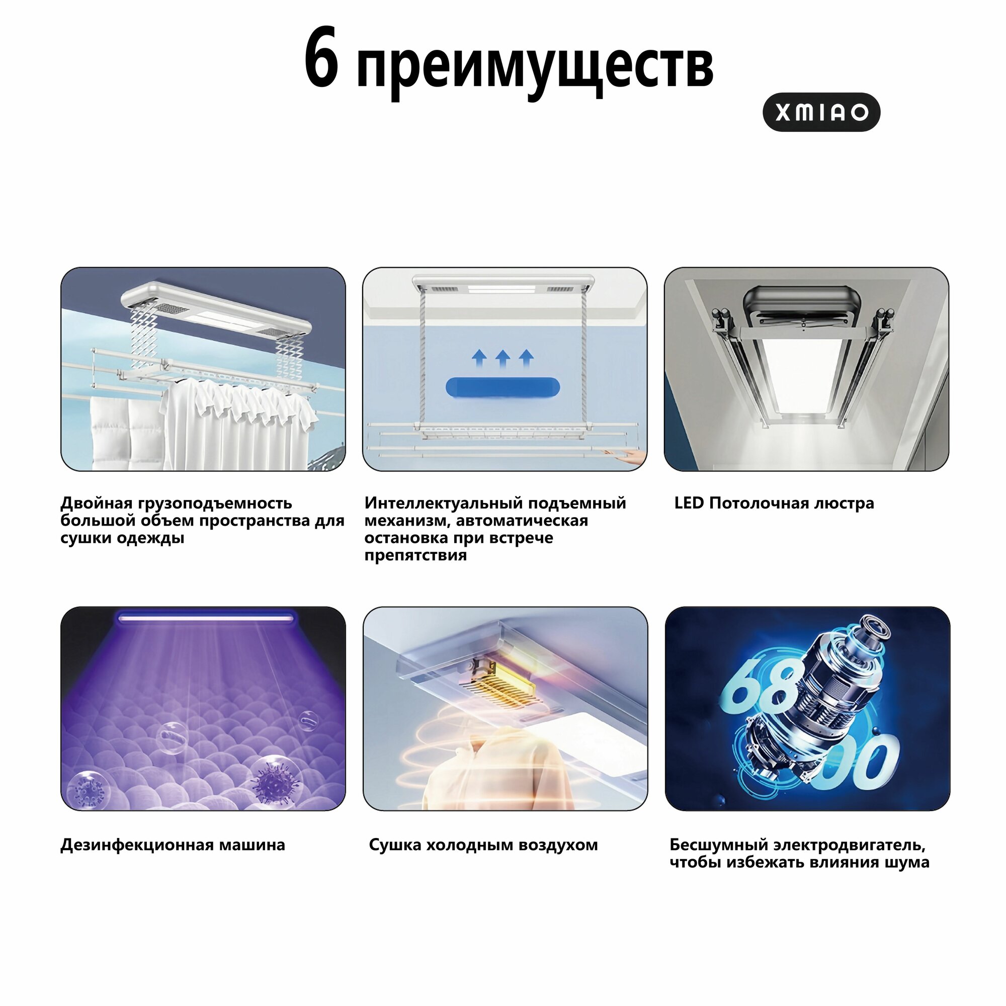 XMIAO - это известный в Китае профессиональный бренд электрических сушильных рам для одежды, в настоящее время постепенно предоставляет свои услуги и продукцию в нескольких странах. V4/V5 - это новейшее поколение модернизированных интеллектуальных многофункциональных электрических сушильных рам для одежды.