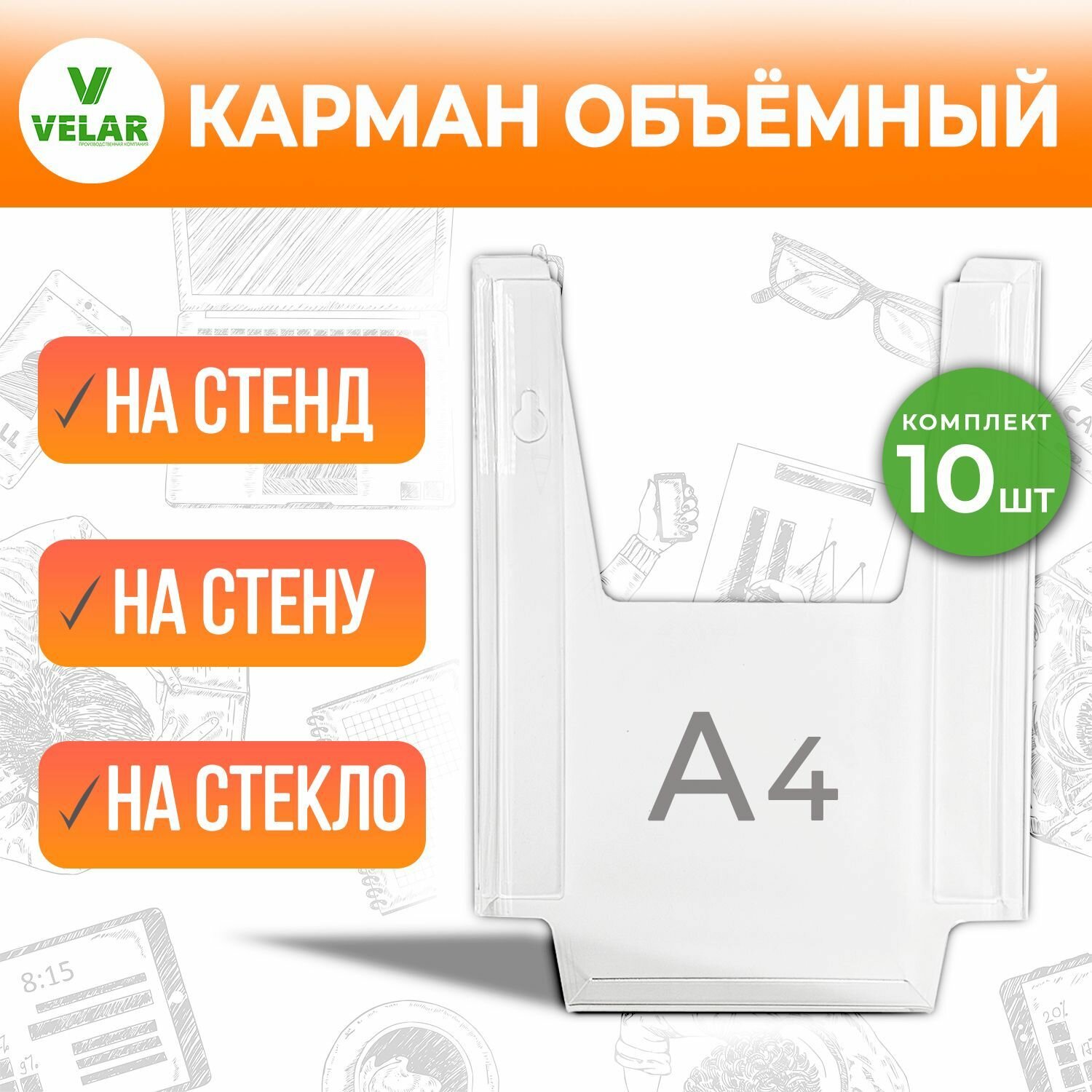 Навесной объёмный карман / буклетница для документов / держатель информации прозрачный, формат А4 (210х300 мм), пластик 1,5 мм, 10 шт, Velar: сравнение цен, характеристики, фото, актуальное наличие и цены.