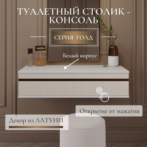Купить Навесной туалетный столик «Голд» Уютная Мебель, эмаль с декором из латуни, бежевый, с ящиком, 90,4х40.7х21.6см с доставкой по всей России. Навесной туалетный столик «Голд» Уютная Мебель, эмаль с декором из латуни, бежевый, с ящиком, 90,4х40.7х21.6см: сравнение цен, характеристики, фото, актуальное наличие и цены.