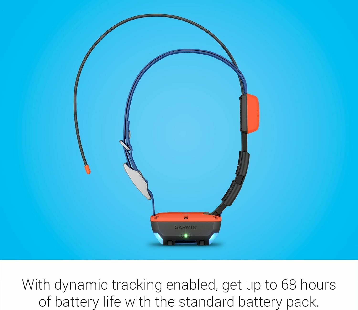 динамическое отслеживание движений вашей собаки для экономии заряда; светодиод для отслеживания в темноте; совместимость с более ёмкой батареей до 136 часов; автоматические обновления при зарядке и подключении к вашей сети с помощью технологии Wi-Fi; совместимость с портативными устройствами Garmin для отслеживания собак, такими как Alpha и Pro 550 Plus (продаются отдельно)
