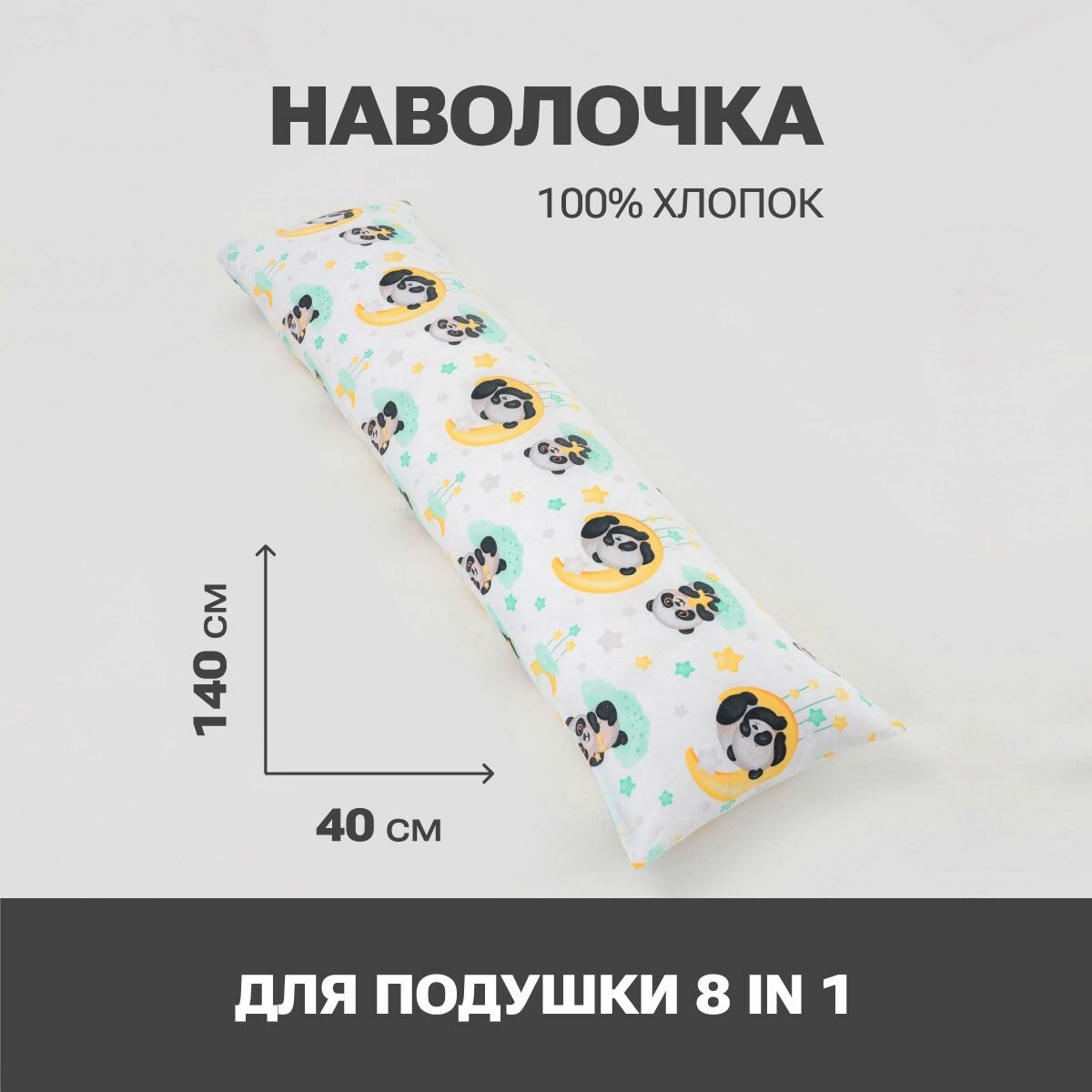 Наволочка для длинной подушки 40х140 для беременных, рисунок Панды, поплин: сравнение цен, характеристики, фото, актуальное наличие и цены.