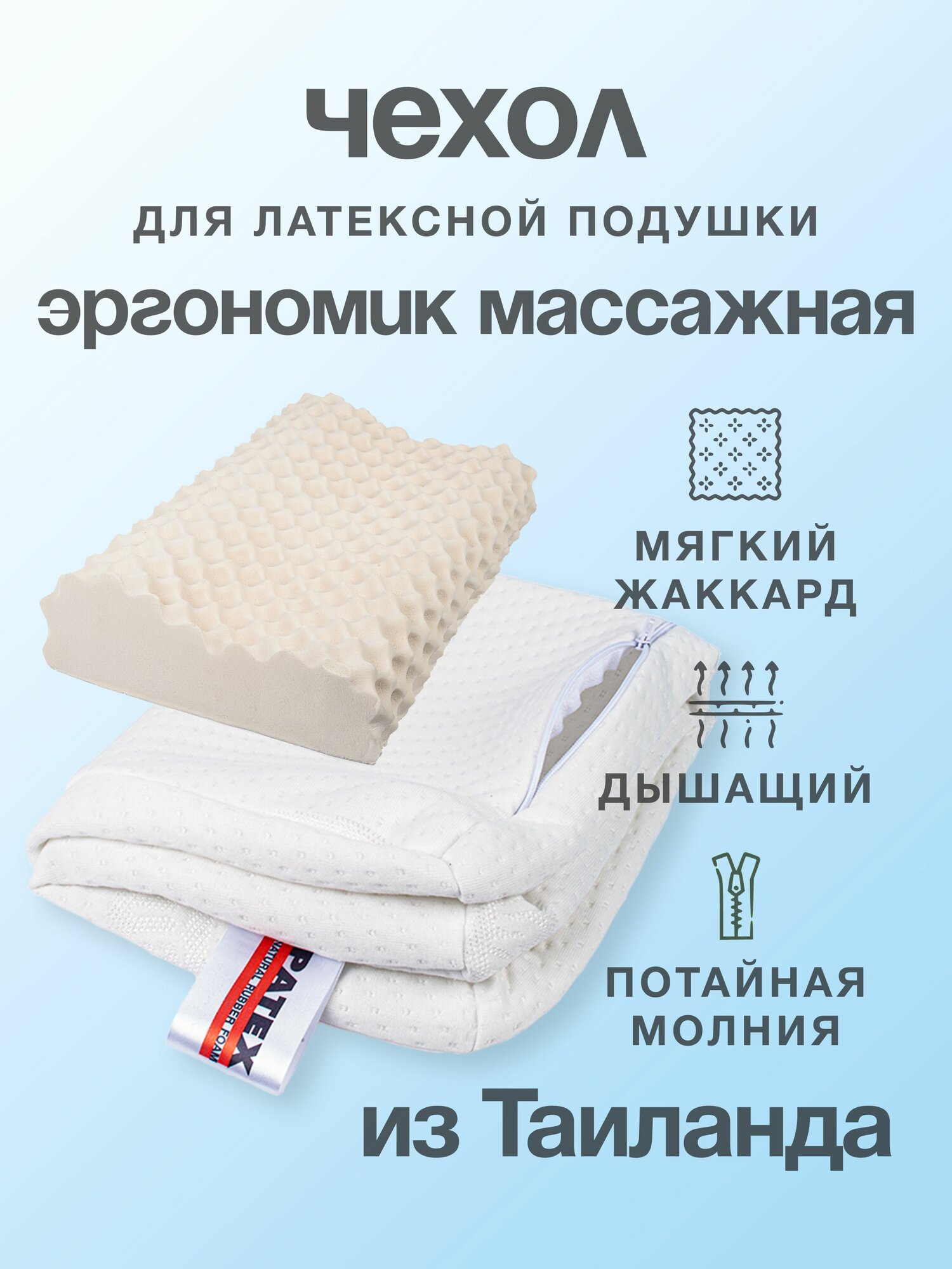 Наволочка на молнии с логотипом Patex для модели Эргономик массажная: сравнение цен, характеристики, фото, актуальное наличие и цены.
