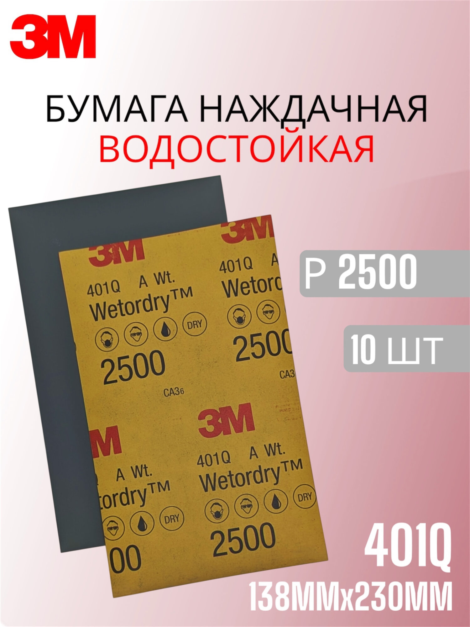 Купить Наждачная бумага водостойкая 3М WetorDry P2500 138х230 мм 10 шт №02045 с доставкой по всей России. Наждачная бумага водостойкая 3М WetorDry P2500 138х230 мм 10 шт №02045: сравнение цен, характеристики, фото, актуальное наличие и цены.