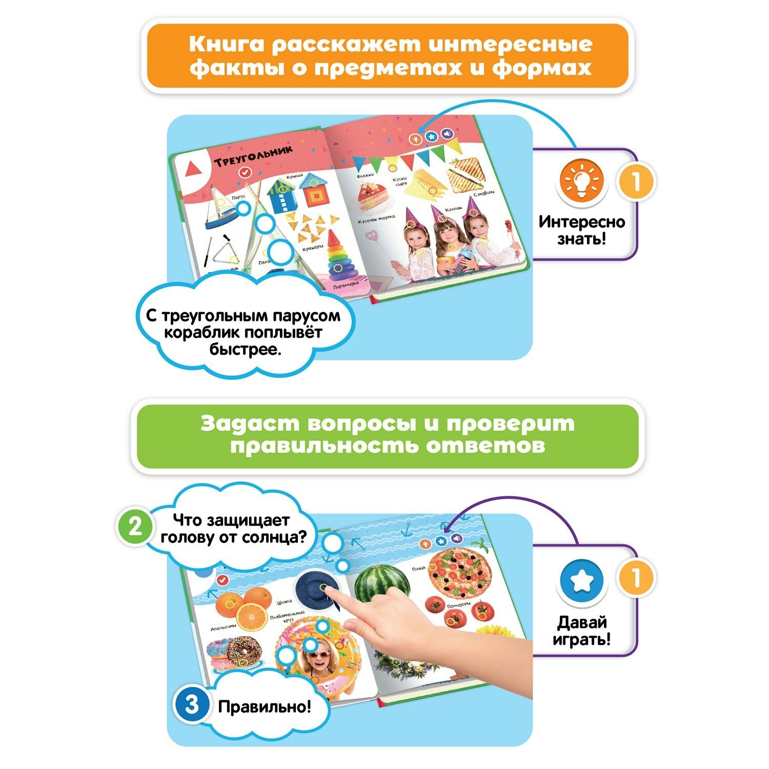 Говорящая интерактивная электронная книга Нажималка для детей от 2 до 6 лет. Развивающая музыкальная книга, в которой оживают 22 страницы с картинками, заданиями и звуками от прикосновения пальцем. 9 книг в коллекции. Говорящая книга «Формы». Познакомит с различными формами, поможет их запомнить. Более 500 фраз и заданий на выбранную тему сделают процесс обучения простым, увлекательным и разнообразным. В игровой форме книга поможет в запуске и развитии речи, тренировке воображения, памяти и пополнении словарного запаса. В книге 22 страницы, на каждом развороте 3 режима: слушаем названия, интересные факты о каждом изображении, найди и покажи, а также регулировка громкости. Книга заменит гаджеты, отвлечет от мультиков. Картонный переплет подходит для частого использования, плотная бумага не мнется и не рвется. Помещается в рюкзаке — удобно брать в дорогу. Работает без батареек, заряжается от сети по USB-кабелю.