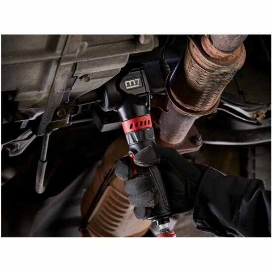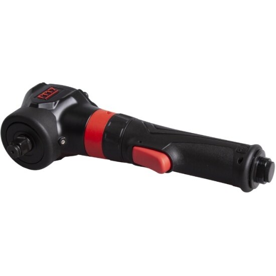 Гайковерт оснащен специальным редуктором углового типа, благодаря которому инструмент имеет угловой тип корпуса и малый размер по оси. Возможность регулировки направления выпуска воздуха.