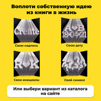 Всего 3 простых шага: 1. Покупаешь книгу Foldbook; 2. Загружаешь любую надпись, памятную дату, инициалы или символ на наш сайт и моментально получаешь инструкцию по сборке онлайн или pdf файл с описанием каждого действия; 3. Собираешь объемную скульптуру с приятным голосовым сопровождением и медитативной музыкой. Открывай набор и сразу приступай к творческому процессу!