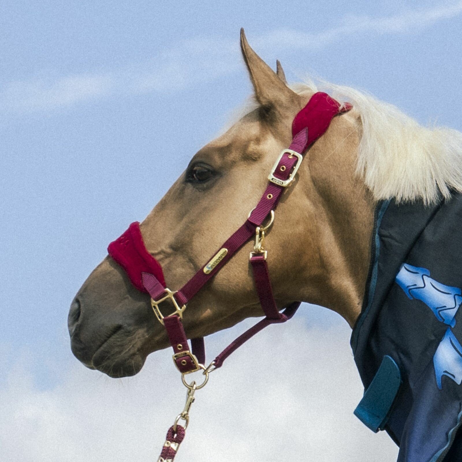 Купить Недоуздок для лошади флисовый с чомбуром ARMA, XFULL, бургунди (Великобритания) с доставкой по всей России.