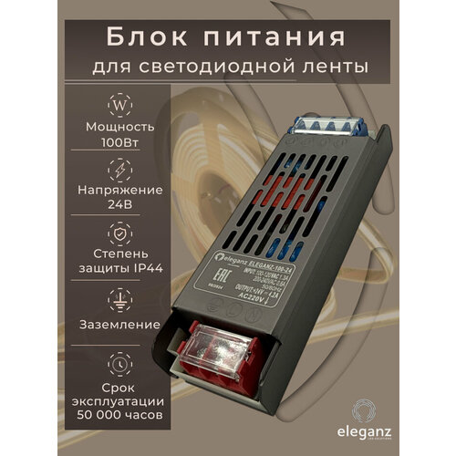 Купить Негерметичный блок питания/узкий трансформатор «Eleganz 100Вт» для светодиодной ленты 24В IP44 с доставкой по всей России. Негерметичный блок питания/узкий трансформатор «Eleganz 100Вт» для светодиодной ленты 24В IP44: сравнение цен, характеристики, фото, актуальное наличие и цены.