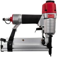 Пневматический нейлер-степлер Matrix 2 в 1 57428 с функцией регулировки глубины забивания предназначен для быстрого скрепления различных материалов гвоздями и скобами 18GA. Его используют для сборки мебели и деревянных каркасов, обшивки и утепления домов, монтажа окон, дверей, плинтусов или напольных покрытий. Нейлер-степлер подключается к любым типам компрессоров, т. к. расход воздуха составляет всего 0,7 л/мин. Преимущества Выбор режима работы — винтовой регулятор позволяет установить оптимальную глубину забивания. Безопасность — предохранитель не допускает случайного выпускания крепежа. Индикатор заполнения магазина — можно отслеживать количество крепежей для своевременной зарядки инструмента. Прочность и долговечность — металлический корпус устойчив к механическим повреждениям. Вместительный магазин — в него помещается 100 гвоздей или скоб, что позволяет реже производить заправку. Комфортная работа — обрезиненная рукоятка удобно ложится в руку и не выскальзывает из ладони Малый вес 1,33 кг — длительная работа со степлером-нейлером не вызывает дискомфорт. Удобное обслуживание — в набор входит масленка и 2 имбусовых ключа. Подтвержденное качество — гарантия на заводской брак действует 3 года.