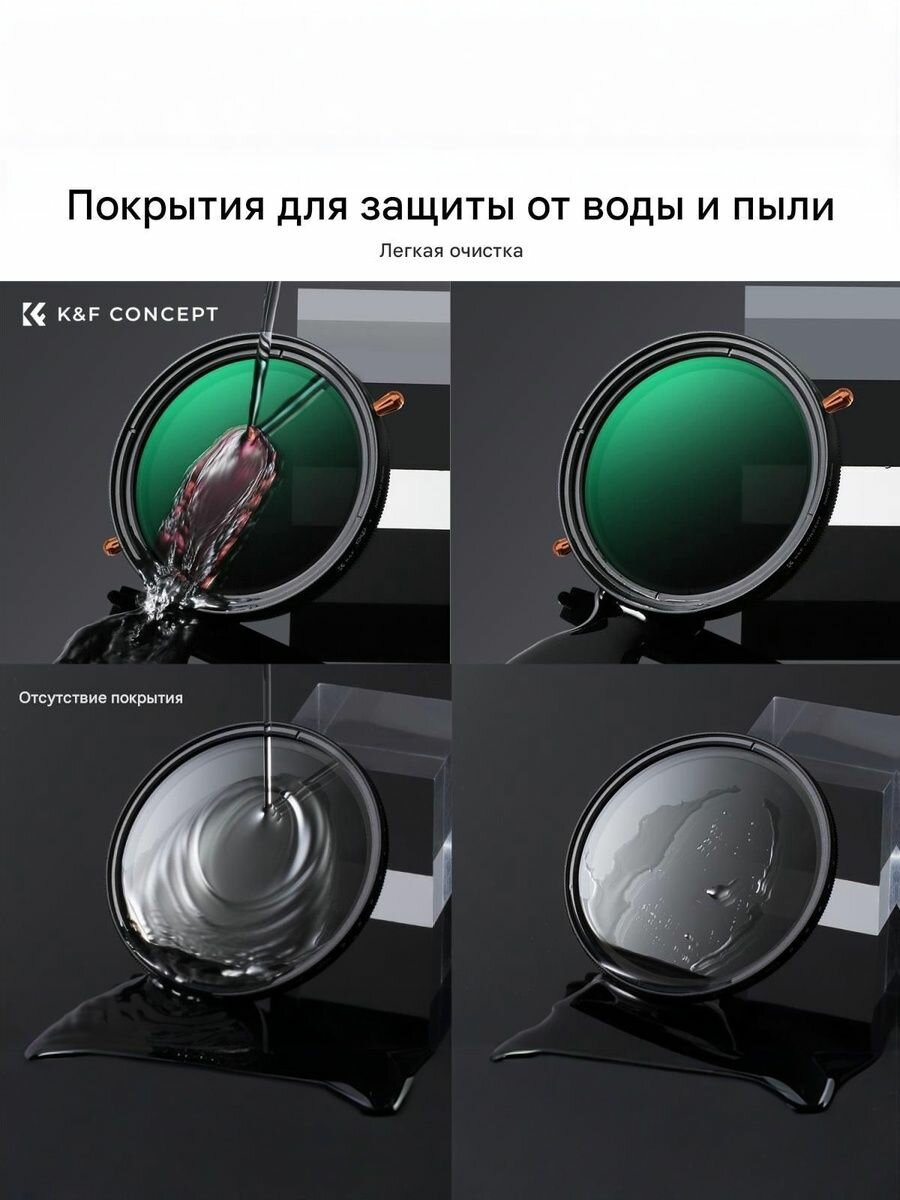 - Универсальность 2-в-1: Фильтр K&F Concept объединяет в себе нейтрально-серый (ND) и поляризационный (CPL) фильтры, позволяя не только регулировать светопропускание (от ND2 до ND32), но и устранять нежелательные отражения от воды, стекла и других неметаллических поверхностей.