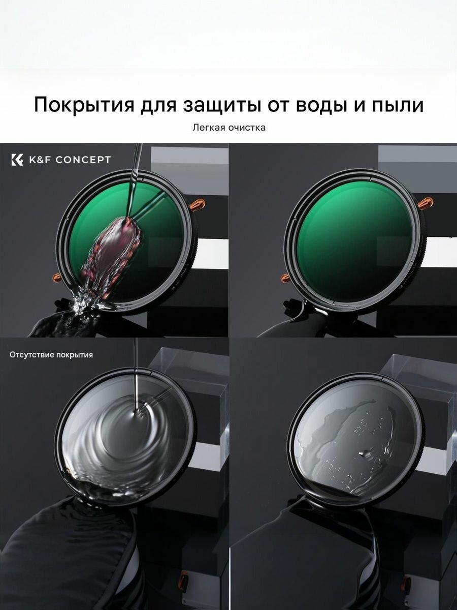 - Универсальность 2-в-1: Фильтр K&F Concept объединяет в себе нейтрально-серый (ND) и поляризационный (CPL) фильтры, позволяя не только регулировать светопропускание (от ND2 до ND32), но и устранять нежелательные отражения от воды, стекла и других неметаллических поверхностей.