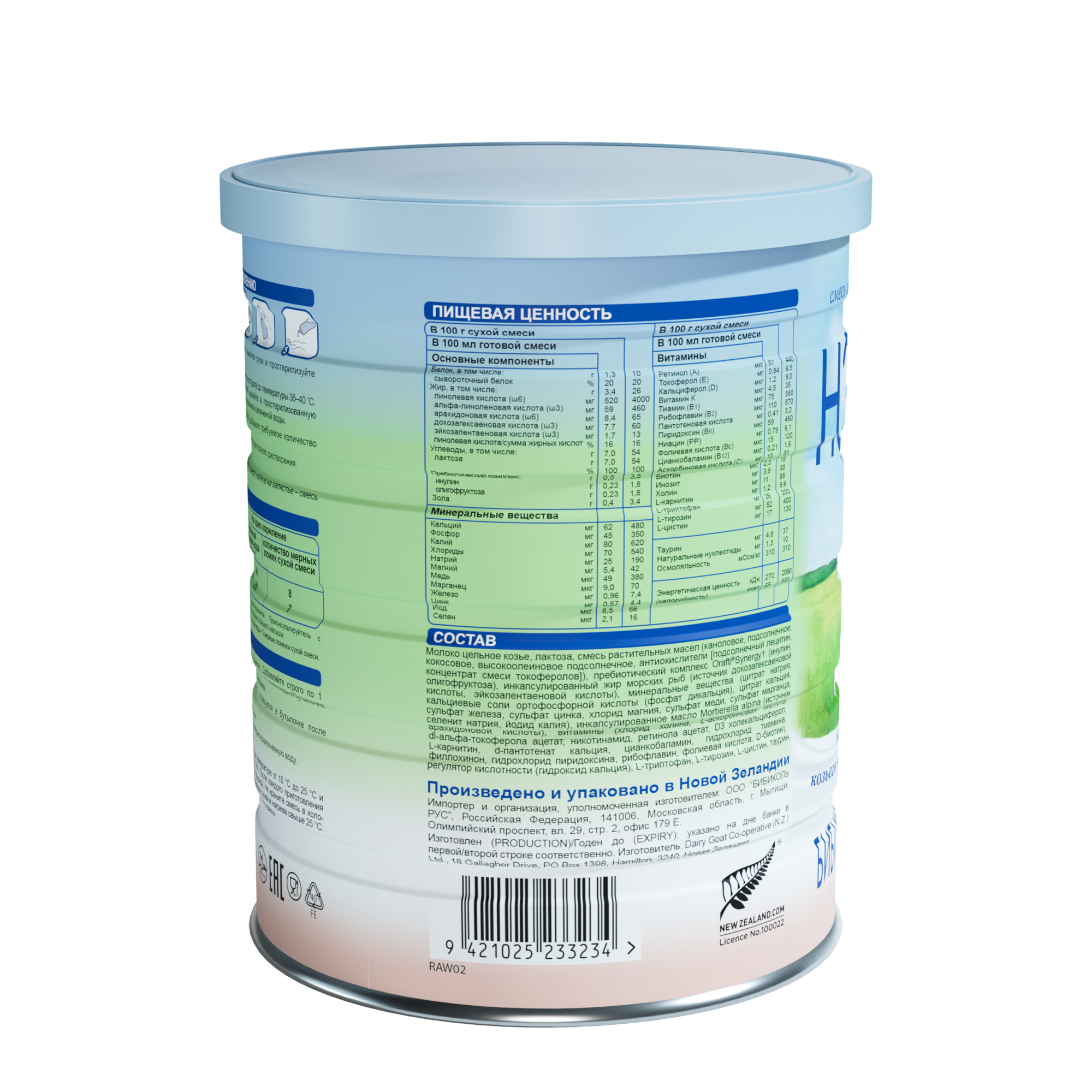 | Состав | молоко цельное козье сухое, лактоза, смесь растительных масел (подсолнечное, каноловое, кокосовое, высокоолеиновое подсолнечное, антиокислители (подсолнечный лецитин, концентрат смеси токоферолов)), мальтодекстрин, пребиотический комплекс orafti synergy 1 (инулин, олигофруктоза), инкапсулированный жир морских рыб (докозагексаеновая кислота, эйкозапентаеновая кислота), минеральные вещества (натрий, кальций, железо, цинк, медь, йод, марганец, селен), инкапсулированное масло mortierella alpina (источник арахидоновой кислоты), витамины (с, холин, е, pp, d, а, пантотеновая кислота, в1, l-карнитин, в12, к, в6, в2, фолиевая кислота, биотин), регулятор кислотности (лимонная кислота), триптофан, таурин |