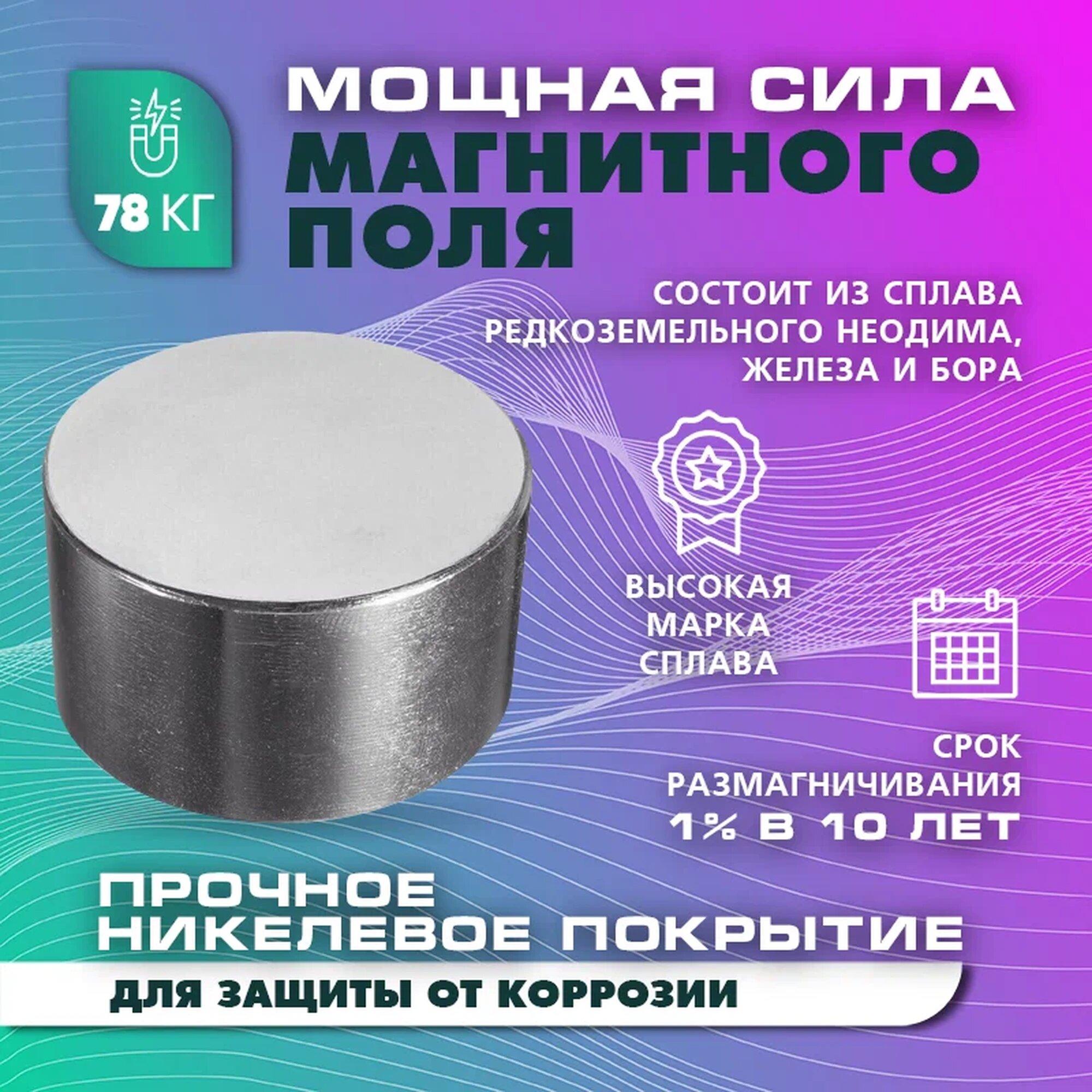 Купить Неодимовый магнит диск 40х20 мм (N52), сила сцепления 78 кг, серебристый с доставкой по всей России. Неодимовый магнит диск 40х20 мм (N52), сила сцепления 78 кг, серебристый: сравнение цен, характеристики, фото, актуальное наличие и цены.