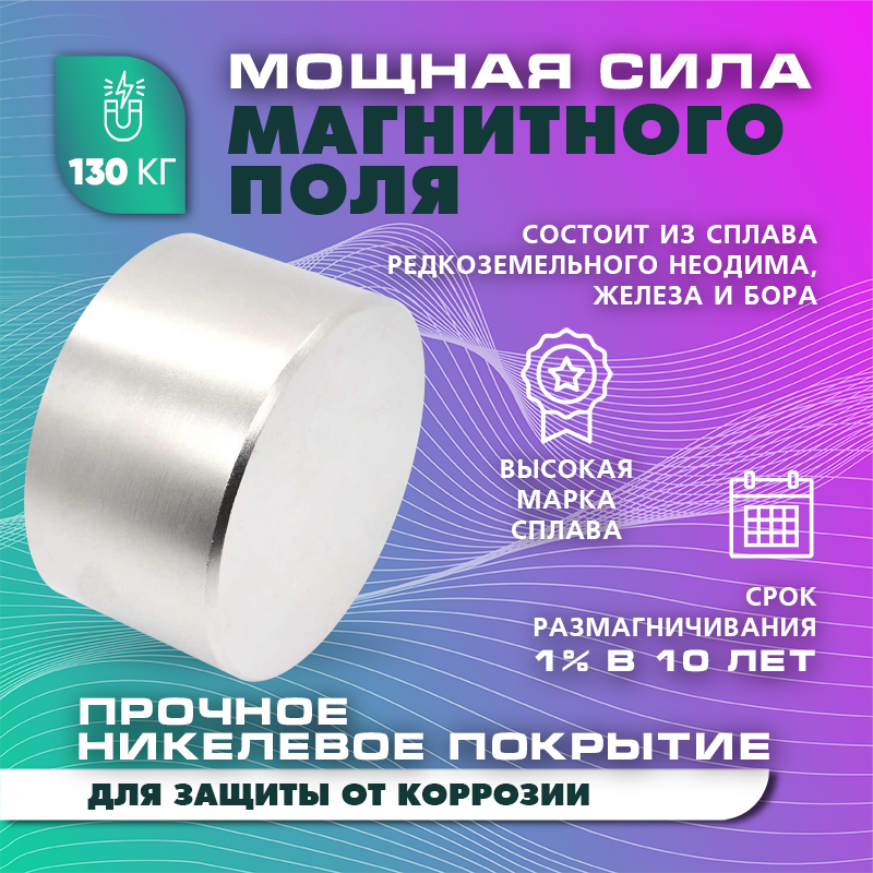 Неодимовый магнит диск 50х30 мм (N52) , сила сцепления 130 кг: сравнение цен, характеристики, фото, актуальное наличие и цены.