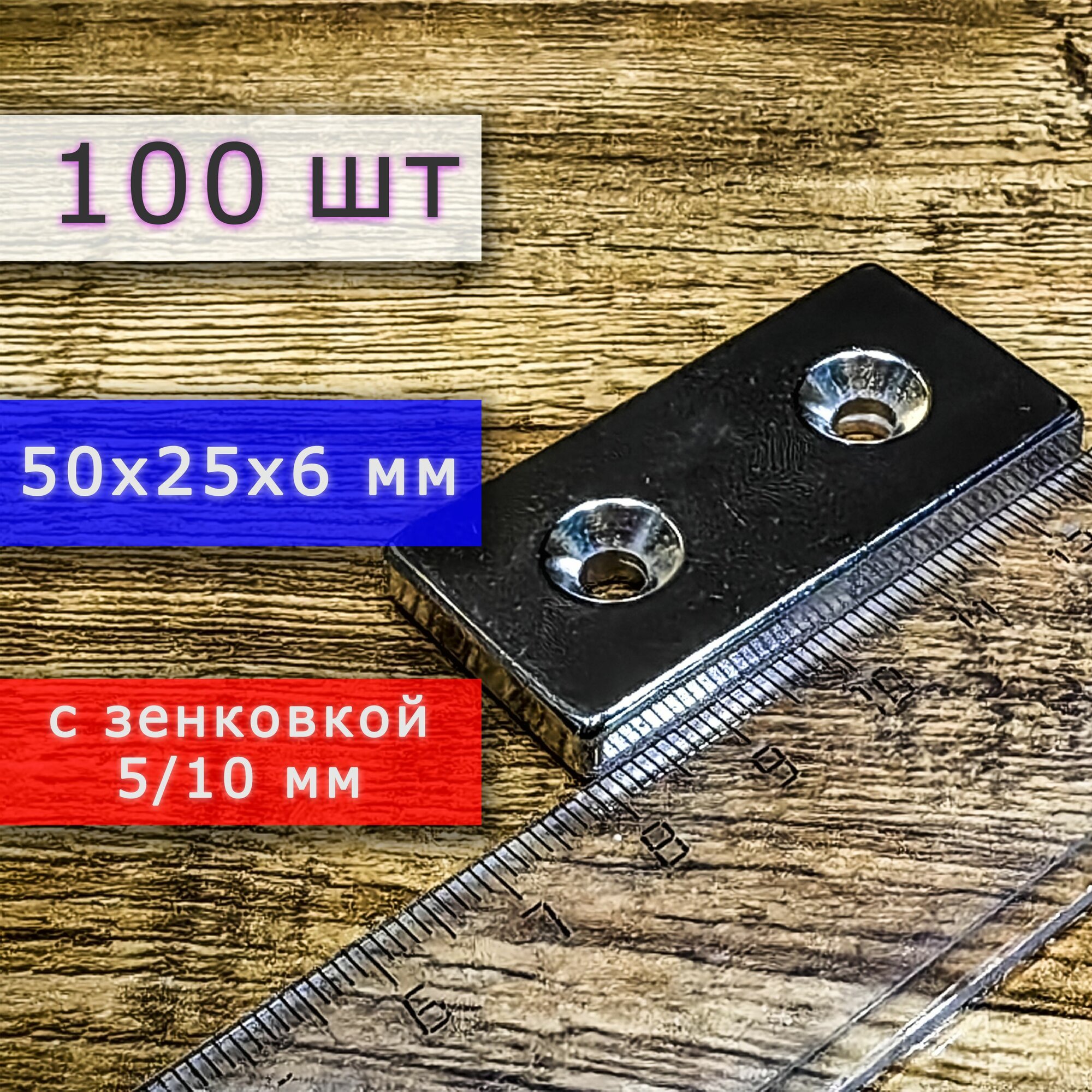 Неодимовый магнит для крепления универсальный мощный (прямоугольник) 50х25х6 мм с отверстием (зенковкой) 5/10 (100 шт): сравнение цен, характеристики, фото, актуальное наличие и цены.