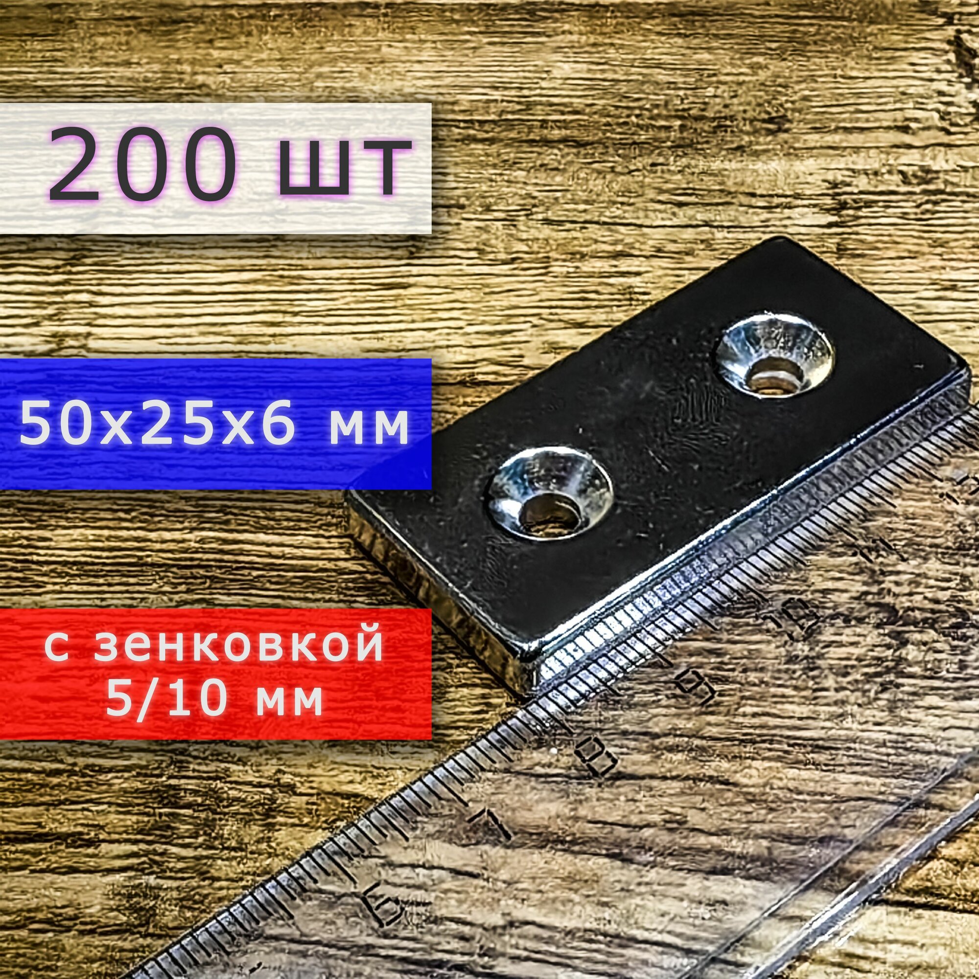 Неодимовый магнит для крепления универсальный мощный (прямоугольник) 50х25х6 мм с отверстием (зенковкой) 5/10 (200 шт): сравнение цен, характеристики, фото, актуальное наличие и цены.