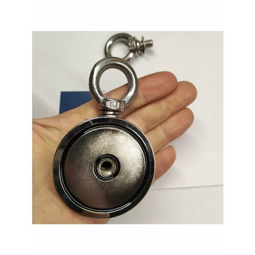Поисковой сильный магнит в виде диска диаметром 60 мм. со съёмными кольцами с двух сторон, способен удерживать вес до 95* кг. в условиях ровной металлической поверхности. Имеет защитный кожух из нержавейки, для предотвращения повреждения магнита. Позволит достать металлические предметы из воды или других труднодоступных мест. Два съёмных кольца для разных вариантов крепления.