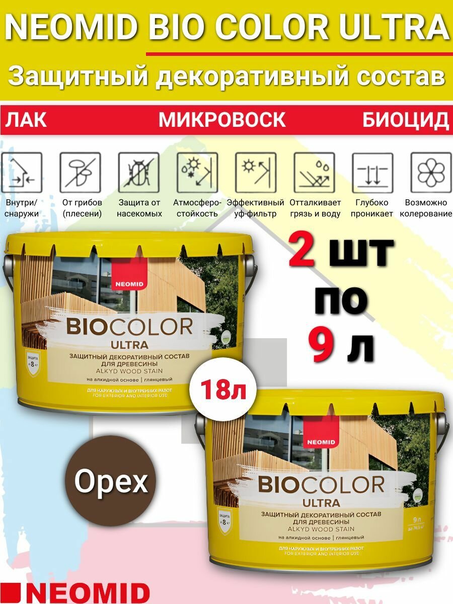 Пропитка для дерева защитно-декаративная NEOMID BIO COLOR ULTRA 18л (9 л-2шт) орех: сравнение цен, характеристики, фото, актуальное наличие и цены.