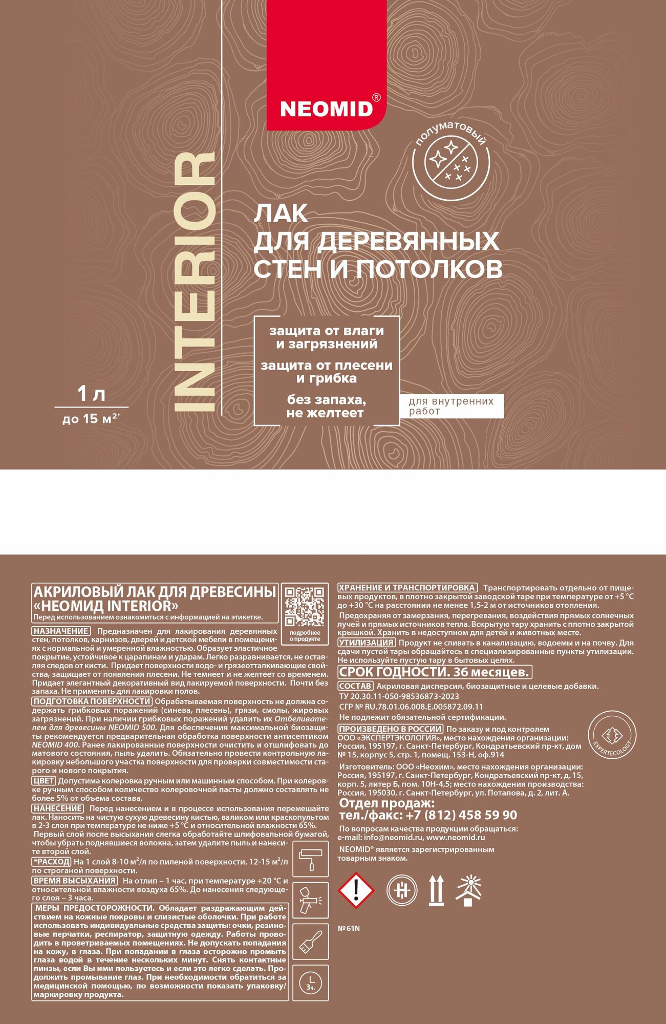 Купить Неомид interior (1 л) — акриловый лак для древесины, полуматовый с доставкой по всей России.