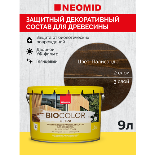 Состав защитный для древесины Neomid Bio Color Ultra – высокоэффективный деревозащитный декоративный состав на алкидной основе для защиты и декоративной отделки деревянных поверхностей.