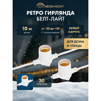 Купить Гирлянда уличная NEON-NIGHT Белт-Лайт 10 м, 2 жилы, 20 патронов E27, шаг 50 см, белый каучук, IP44 с доставкой по всей России. Гирлянда уличная NEON-NIGHT Белт-Лайт 10 м, 2 жилы, 20 патронов E27, шаг 50 см, белый каучук, IP44: сравнение цен, характеристики, фото, актуальное наличие и цены.