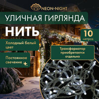 Купить Гирлянда светодиодная Нить на елку уличная, 10м, 24В, цвет Белый, новогодние товары подарки/ электрогирлянда Neon-Night с доставкой по всей России.