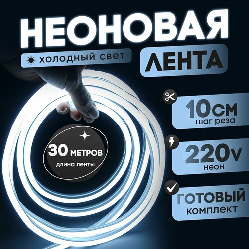 Неоновая лента 220В холодный белый гибкий неон 30 метров 8х16, IP67, 120Led, 10W, шаг реза 10см: сравнение цен, характеристики, фото, актуальное наличие и цены.
