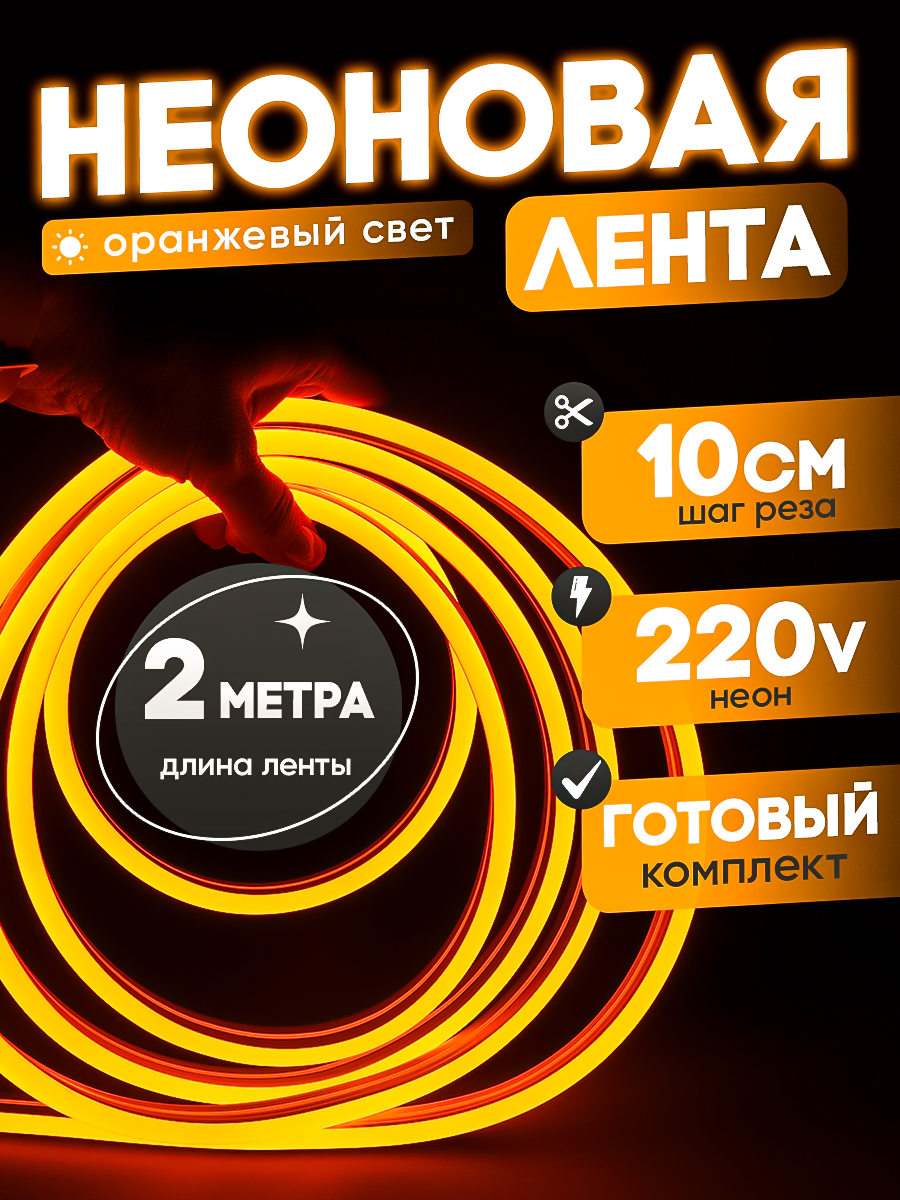 Неоновая лента 220В оранжевый гибкий неон 2 метра 8х16, IP67, 120Led, 10W, шаг реза 10см: сравнение цен, характеристики, фото, актуальное наличие и цены.