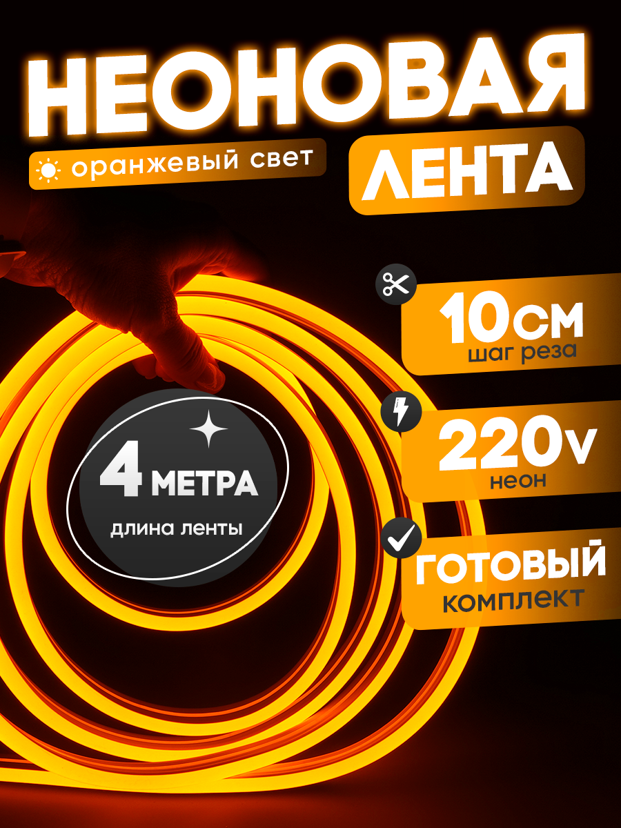 Неоновая лента 220В оранжевый гибкий неон 4 метра 8х16, IP67, 120Led, 10W, шаг реза 10см: сравнение цен, характеристики, фото, актуальное наличие и цены.